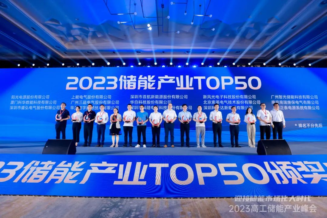 华自科技荣获 “2023年储能产业链T0P50”奖项