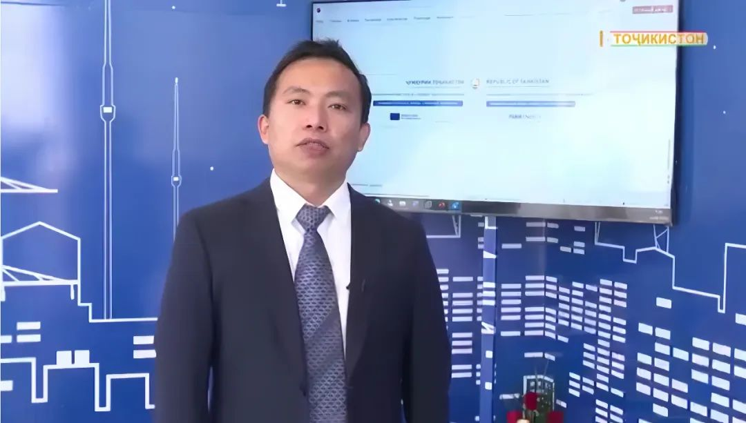 ▲华自科技国际公司营销总监储奥琪接受塔吉克斯坦电视台采访