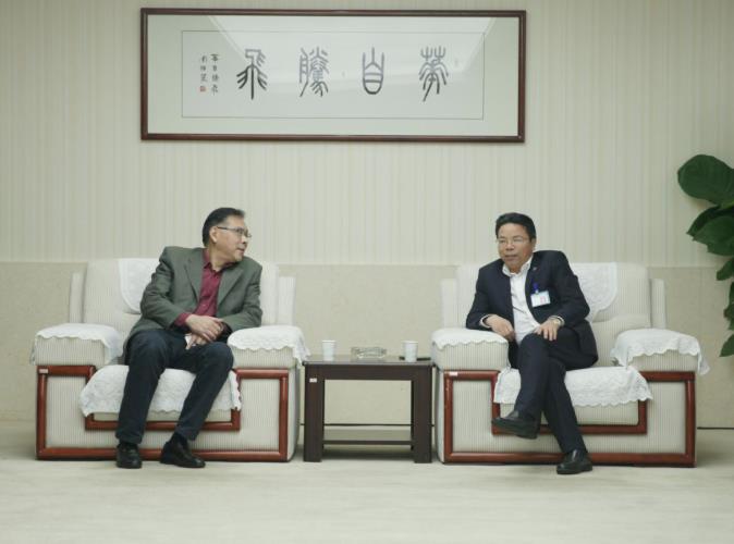 华自科技总裁佘朋鲋与中国能建湖南院党委委员、副总经理罗志强进行交流