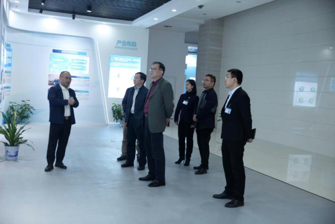 华自科技副总裁唐凯陪同来访嘉宾参观公司展厅