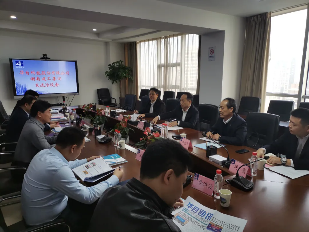 黄文宝感谢湖南建工集团多年来对华自科技的宝贵支持,介绍了华自科技的发展历程与智慧环保、智慧能源、智慧水利、智能运维等业务板块的发展情况,以及公司实施“走出去”战略在海外市场取得的成绩,希望通过此次座谈,进一步拓宽双方的合作思路,加强在环保水处理、光伏储能等领域的交流合作,合力助推产业可持续发展。
