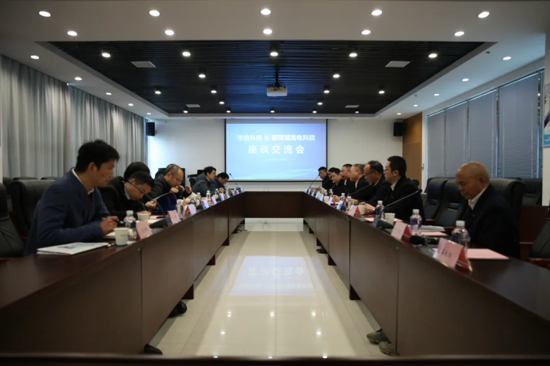 国网湖南电科院副院长、总工宋兴荣,院长助理、科技部主任周舟,高级职员寻新,办公室、财务部主任陈思铭,物联网中心主任张可人,配网中心副主任朱吉然,设备评价中心副主任谢亿,电网中心副主任吕当振,继保中心熊尚峰;华自科技研究院副院长朱玺、副总工程师石铁洪、测试中心主任李焕文、硬件研发部副部长杨义、战略合作部副部长何谐等共同参与本次交流活动。
