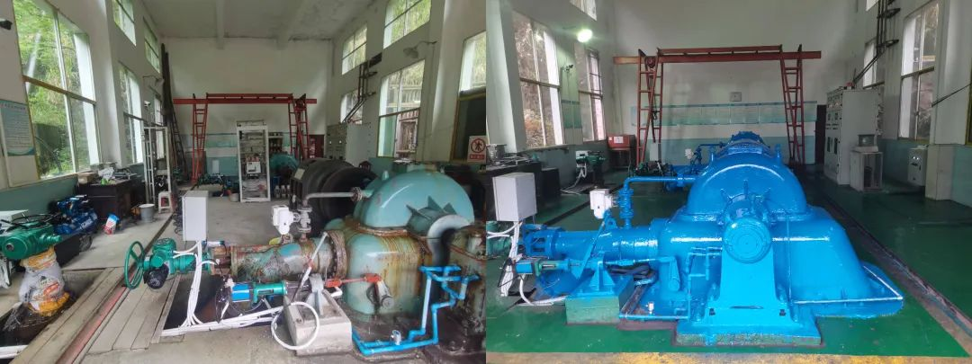 某电站发电机改造前后对比照