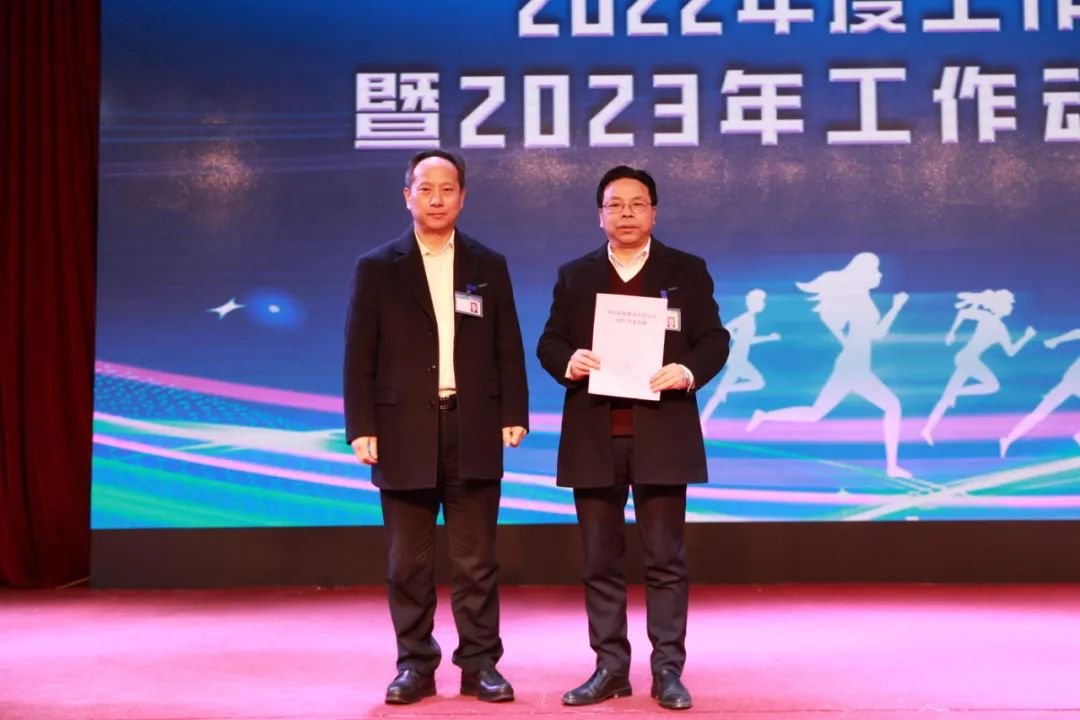会上,财务总监陈红飞宣布2023年度总预算及各单位预算目标,为2023年度各项工作开好局、起好步、谋好篇,下好先手棋。各高层干部、利润中心负责人及部分子公司代表上台接受公司预算下达,激励全体员工为各自目标努力奋斗。 预算下达总裁佘朋鲋通报《2022年度高层管理岗位任职目标承诺完成情况评定结果》,宣读《2023年度高层管理岗位任职目标承诺难度等级评定结果》,并与高目标代表签订任职目标承诺书,希望全体干部锚定目标,精准发力,扎实推进各项工作。