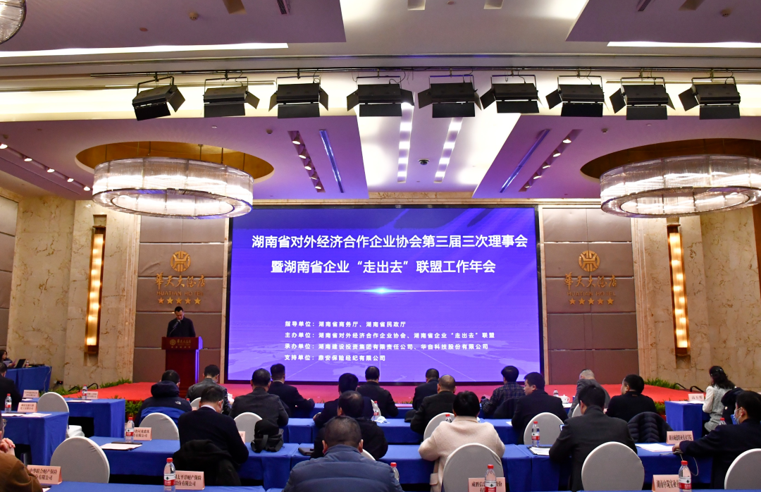 2月3日,湖南省对外经济合作企业协会(以下简称“协会”)第三届三次理事会暨湖南省企业“走出去”联盟工作年会在长沙召开。湖南省商务厅二级巡视员楼良金、对外投资和经济合作处处长胡松强和副处长李正淳等领导出席本次会议。协会理事单位、湖南省企业“走出去”联盟共70余家单位代表参加会议。本次会议由湖南建设投资集团有限责任公司、乐投体育承办,鼎安保险经纪有限公司支持。会议由协会秘书长刘浦主持。