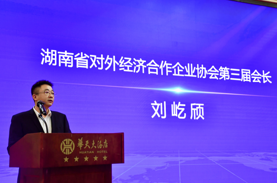 湖南省商务厅二级巡视员楼良金、对外投资和经济合作处处长胡松强为协会新任会长、副秘书长颁发聘书第三届新任会长刘屹颀发表就职演讲,他首先对上任会长及秘书处各位同事多年来的辛勤付出和卓越贡献表示感谢和敬佩,并希望在原有基础上更加锐意进取、开拓创新与协会成员及联盟企业共谋发展,推动湘企“走出去”工作迈上新台阶。