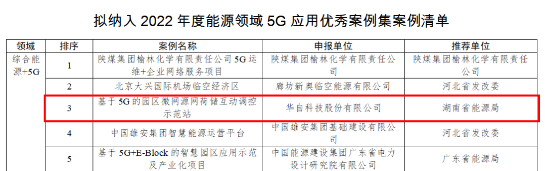 为深入贯彻党中央、国务院关于加快推动5G发展的决策部署,全面推动能源领域5G应用规模化落地,国家能源局组织开展2022年度能源领域5G应用优秀案例征集及遴选工作。经过专家评审和企业答辩,本次遴选中全国仅有33个项目入选,其中华自科技“基于5G的园区微网源网荷储互动调控示范站”项目作为湖南省唯一入选案例,跻身于2022年度能源领域5G应用优秀案例榜单。