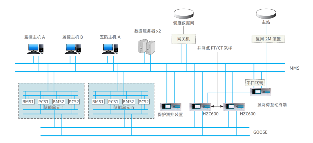 HZC-600多能物联协调控制器基于公司在各类应用场景充分运行、验证的智能化保护控制平台研发,适用于各种电压等级和装机容量的储能电站,完成储能站内全站储能变流器(PCS)的统一协调控制,实现源网荷储、一次调频、动态调压、AGVC调节命令转发等核心控制功能;也可应用于微电网的保护与协调控制,在并网和孤网运行方式下,通过对PCS控制模式的切换,以及对DG(Distributed Generation)、负荷的有效控制,维持微电网运行时功率和频率的稳定。