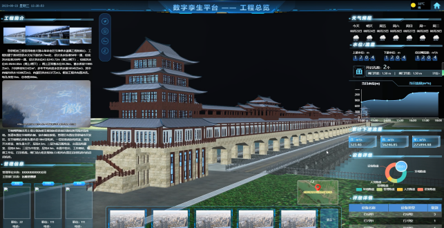 大别山水闸数字孪生平台基于AI、BIM+GIS、物联网、水利模型等新一代信息技术,在智能控制—维护—管理集成体系的基础上,将闸站建设、运行、维护各阶段的数据及业务应用系统高度整合集成,构建可靠、易用的三维可视化综合智能管理平台,开展智能化模拟和前瞻性预演,为工程安全、防洪调度“四预”提供技术支撑。